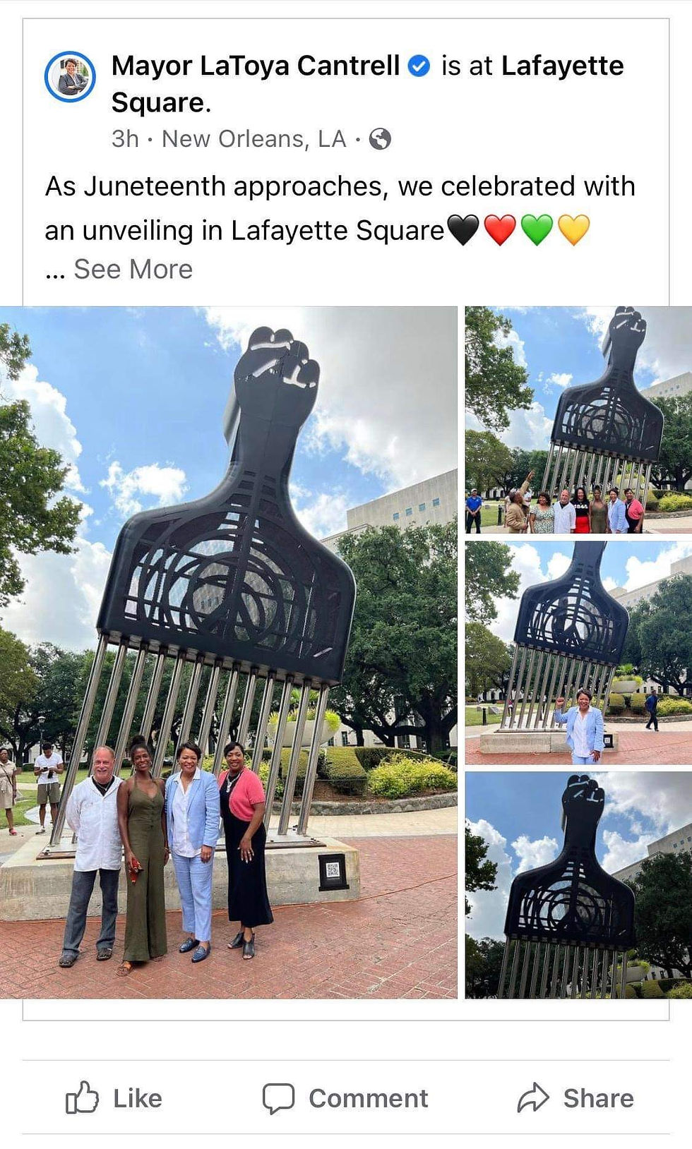 So in current event in New Orleans, this is what our stupid cunt Mayor’s priorities are. Adding a piece of art to Lafayette Square to celebrate Juneteenth. It’s a fucking hair pick with a black power symbol on top. For a culture that has supposedly contributed so much, this is what they pick as a representative? Of course you see the hair pick with the back drop of Gallier Hall. This city is so fucked. It’s a perfect representation of the stupid, ignorant residents who voted and re-elected this clown.